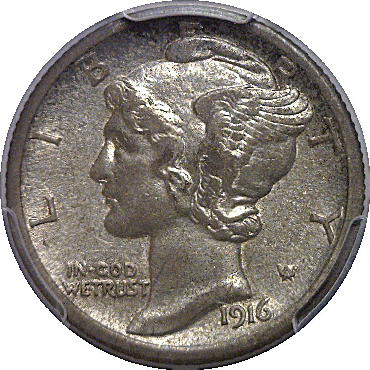 The key date of the Mercury Dime series with only 264,000 pieces struck, making it the lowest mintage regular-issue dime of the 1900s. This Choice About Uncirculated example shows strong detail for the grade, with Liberty’s winged cap displaying good definition and most design elements still sharp. Light, even wear is present on the high points, while the coin retains appealing silver-gray surfaces with hints of satiny luster in the protected areas.