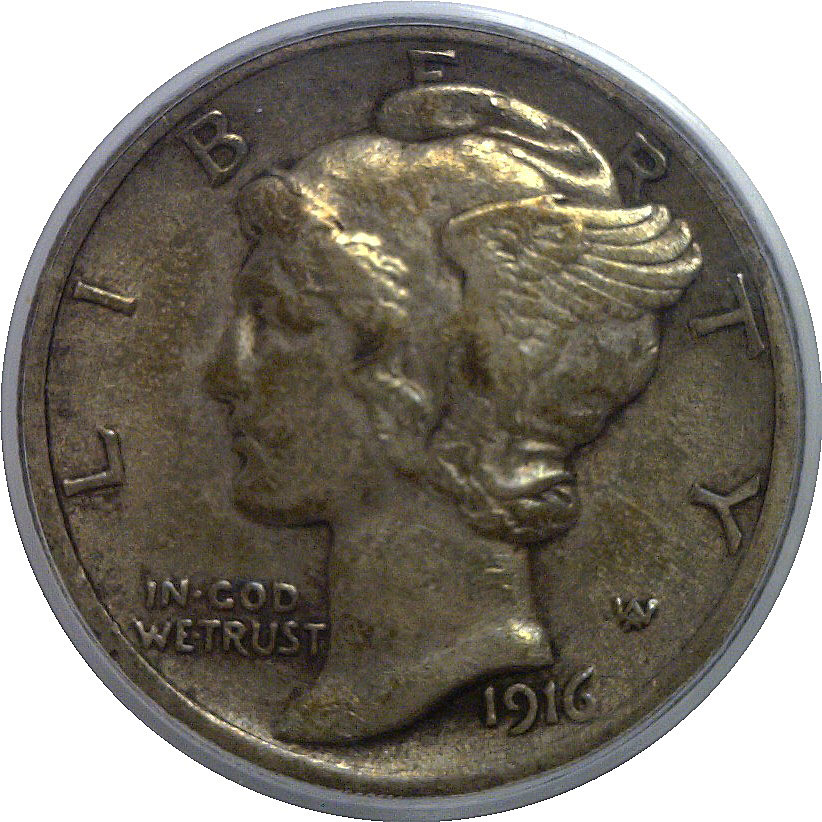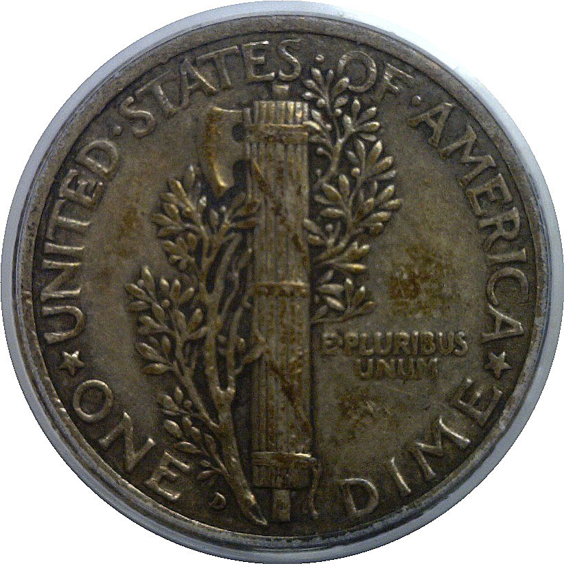 CAC. A pleasing and problem-free example of this key-date Mercury dime. The obverse shows light, even wear with Liberty’s portrait bold and well-outlined, including clear separation of hair details and strong definition through the central devices. The reverse displays solid vertical bands and a well-defined fasces, with only light smoothing consistent with the grade. Surfaces are original and undisturbed, exhibiting attractive medium-gray patina with subtle darker accents in the recesses. No distracting marks or impairments are evident, and overall eye appeal is notably strong for the grade.