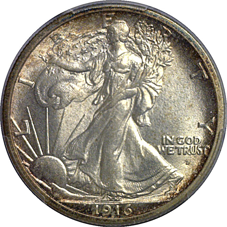 A beautiful example of this first year ‘Walker’ with vibrant mint luster over nearly perfect original surfaces. The flashy brilliant center on both sides has a faint champagne hue and is framed by a trace of russet toning at the rim. Super quality! Only 4 coins have graded numerically finer at PCGS.