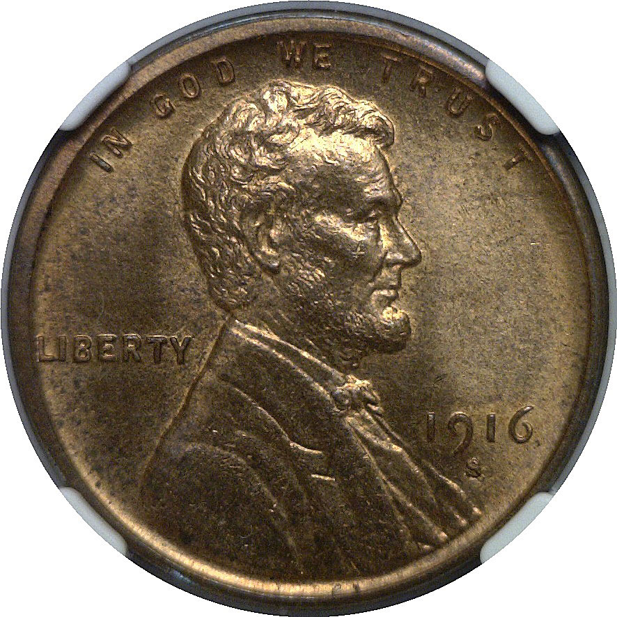 A sharp Gem example of this early San Francisco issue. Rich red-brown color blends with strong mint luster, while the strike reveals crisp detail throughout Lincoln’s portrait and the reverse wheat ears. Well preserved surfaces give the coin excellent overall eye appeal.