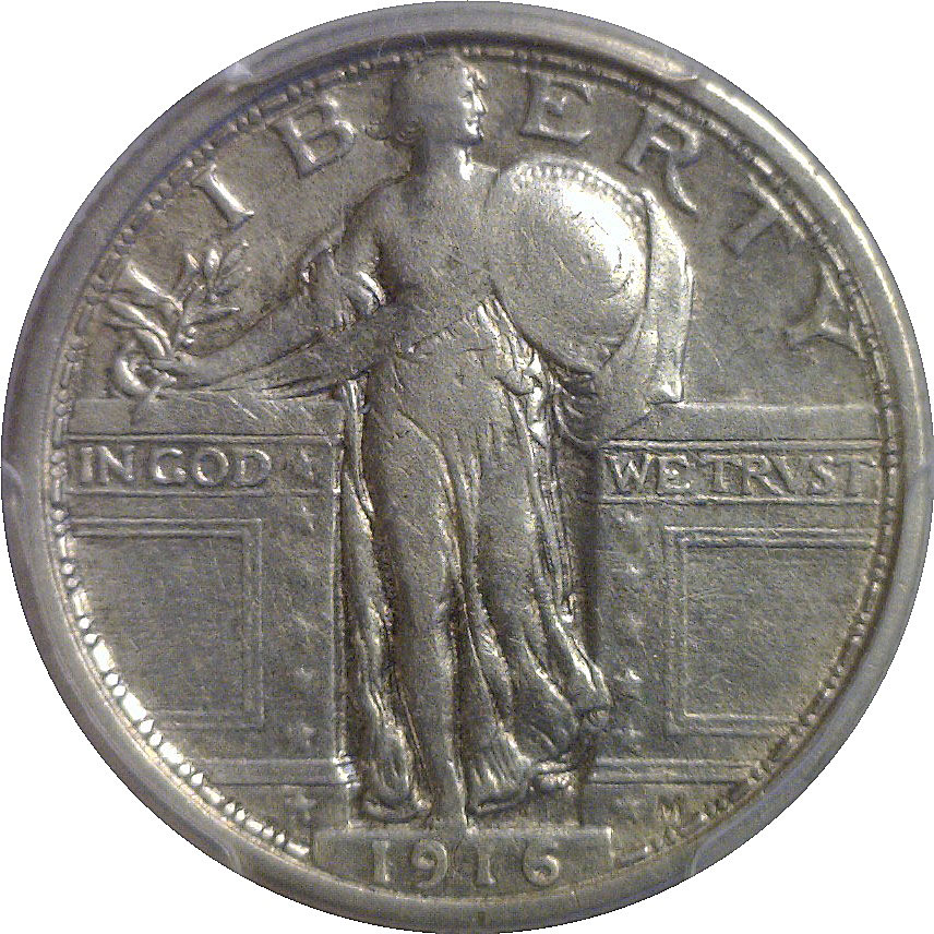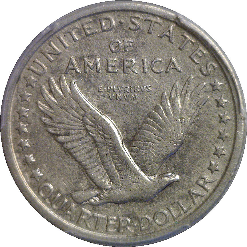 A pleasing mid-grade example of this rare first-year Standing Liberty Quarter, with a mintage of just 52,000 coins. Liberty’s figure retains strong outline detail with clear drapery folds, a bold date, and well-defined shield lines. The reverse eagle remains sharply rendered with even, original silver-gray surfaces throughout. A solid Choice VF example of this desirable Standing Liberty Quarter.