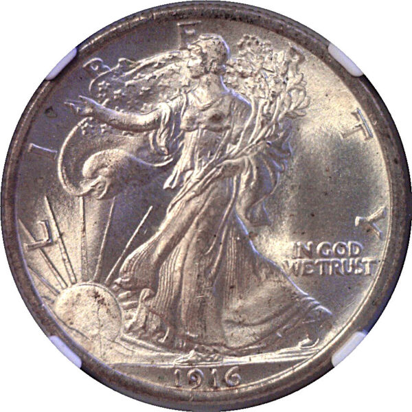 A beautiful example of this first year ‘Walker’ with a very sharp strike and an exceptionally thick luster patina that displays a faint golden hue on the reverse.
