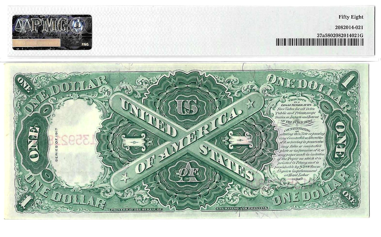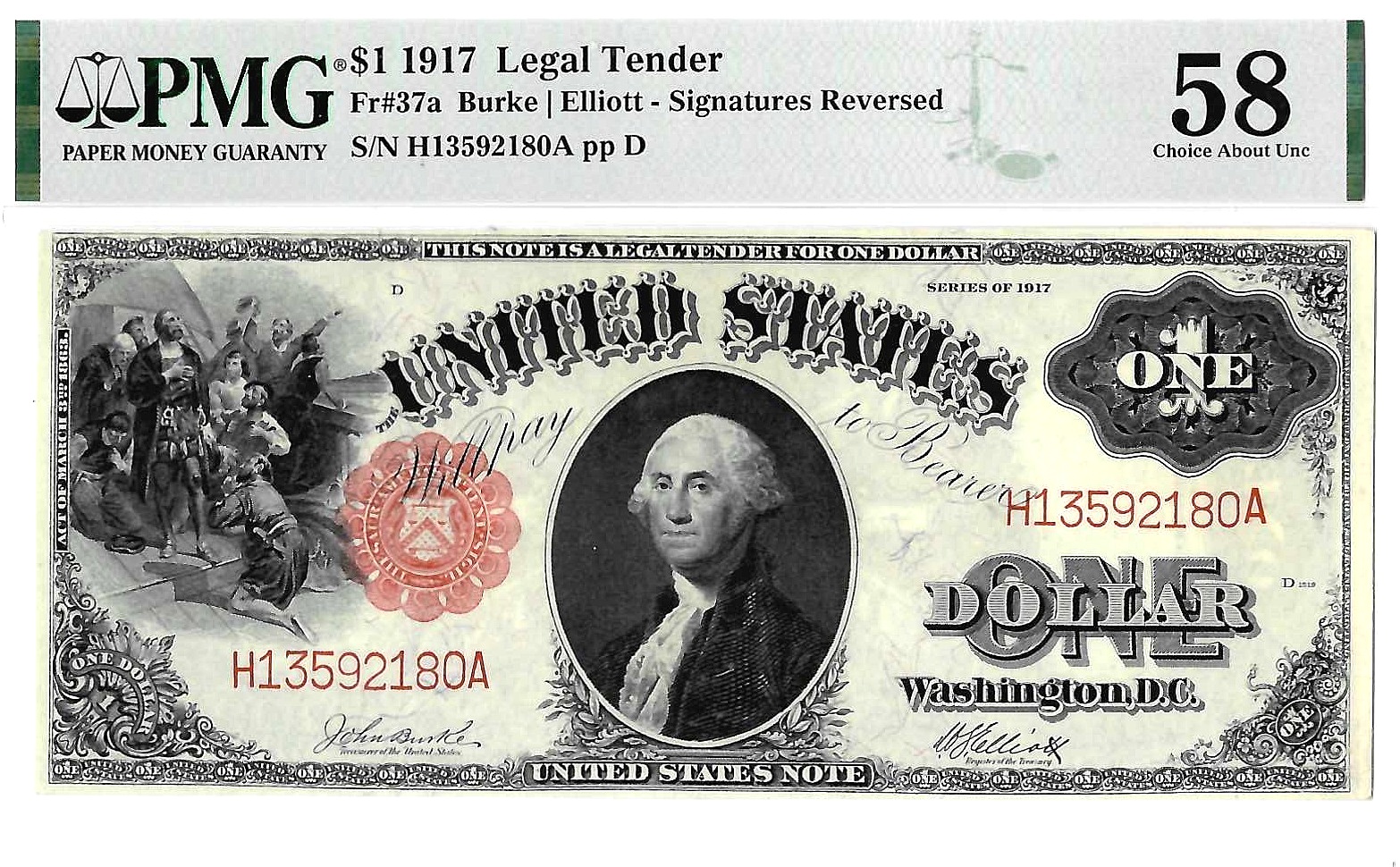 1917 $1 Legal Tender Note Fr. 37a Engraving Error PMG Choice AU 58
