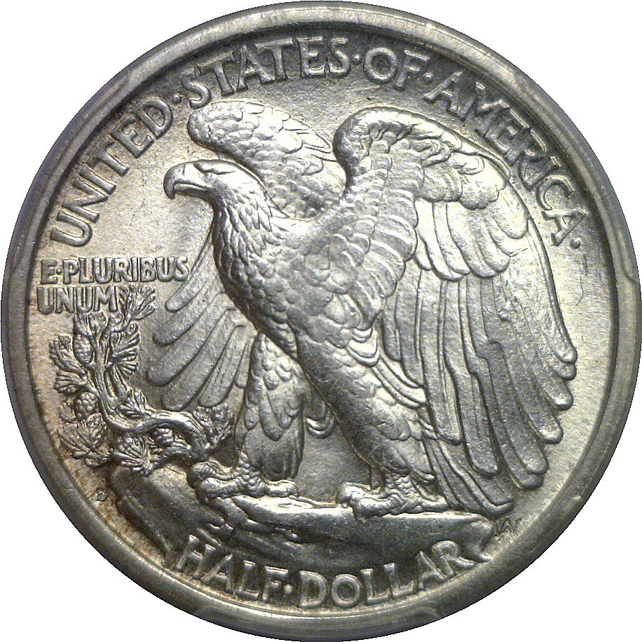 CAC. An attractive Mint State example of this scarce early Denver Mint ‘Walker’. Bright original luster highlights the classic design, with pleasing detail in Liberty’s flowing gown and the eagle’s feathering. The MS63+ grade reflects strong eye appeal and surfaces that approach the next grade level.