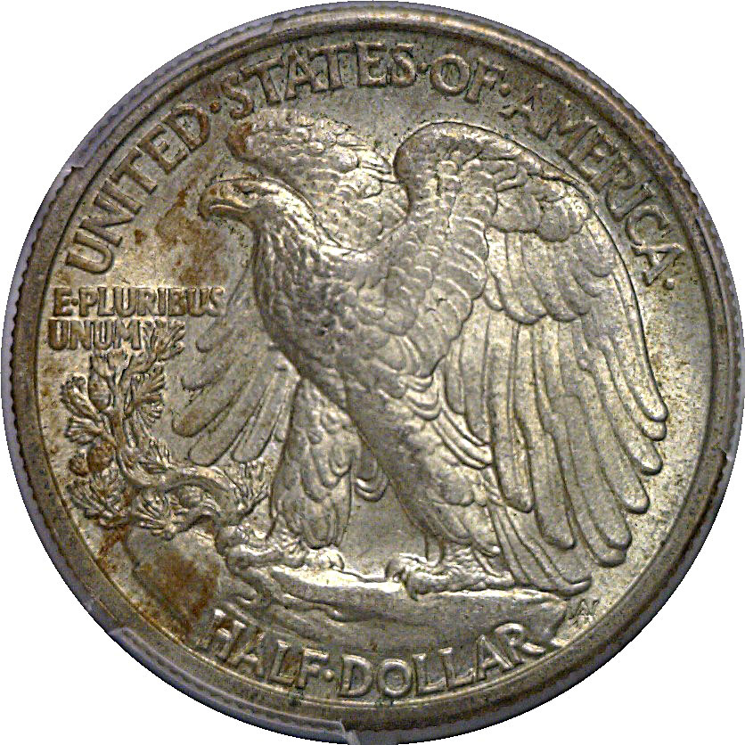Sharply struck with strong underlying luster and silver-gray surfaces with a splash of gold toning.