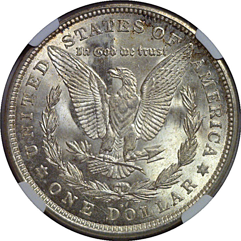 Sharply struck with choice surfaces and satiny mint luster. Mostly white with just a trace of toning at the rim.