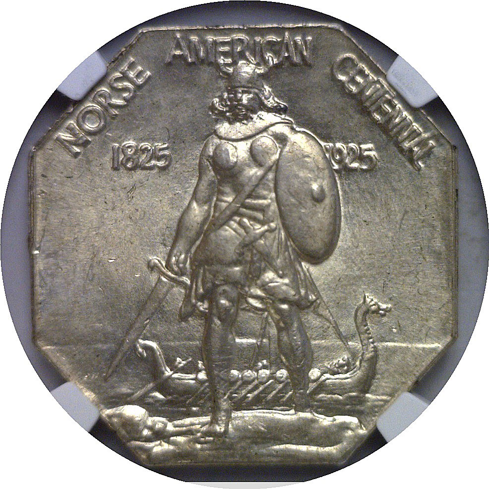 A boldly struck and highly appealing Norse-American Medal in thick silver, offering crisp detail across the Viking figure and ship motifs. Smooth, lustrous surfaces show vibrant silver-white color with minimal marks for the grade. An attractive Gem example of this popular commemorative issue.