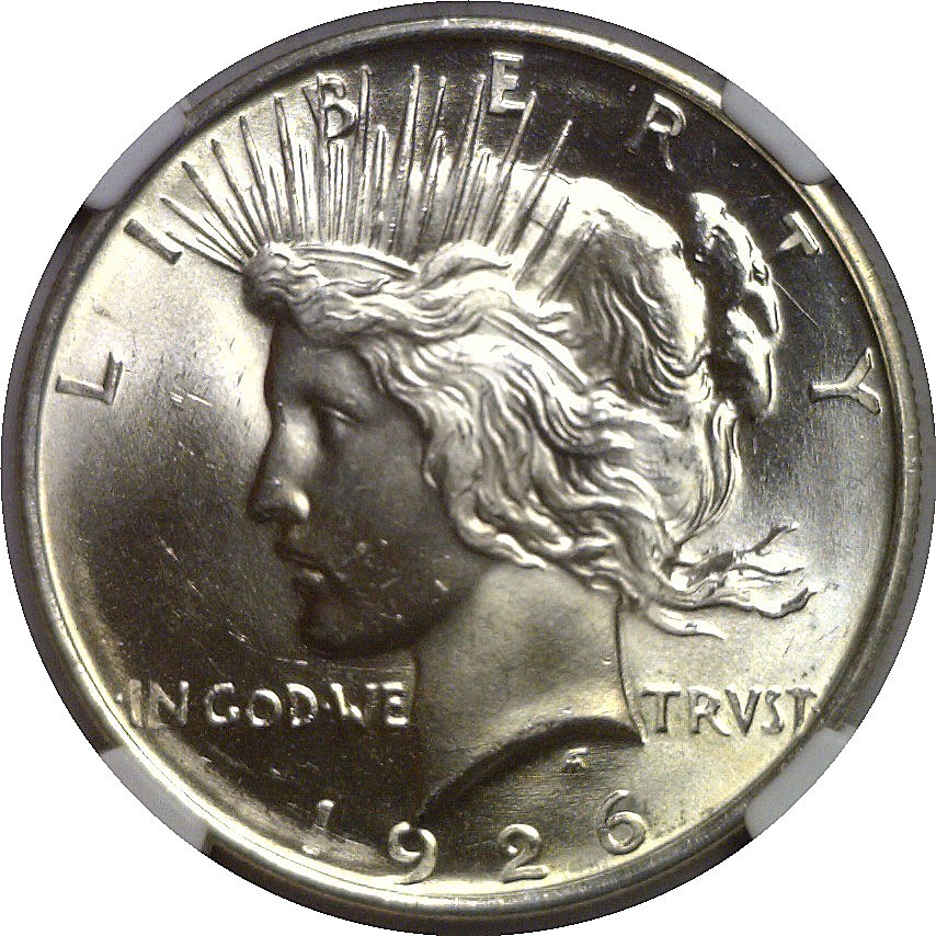 Vibrant, satiny luster and a sharp strike. Liberty’s hair detail, the reverse eagle, and sunburst rays are all boldly defined. Clean surfaces with only minor marks for the grade. A pleasing Mint State example of this better Denver issue.