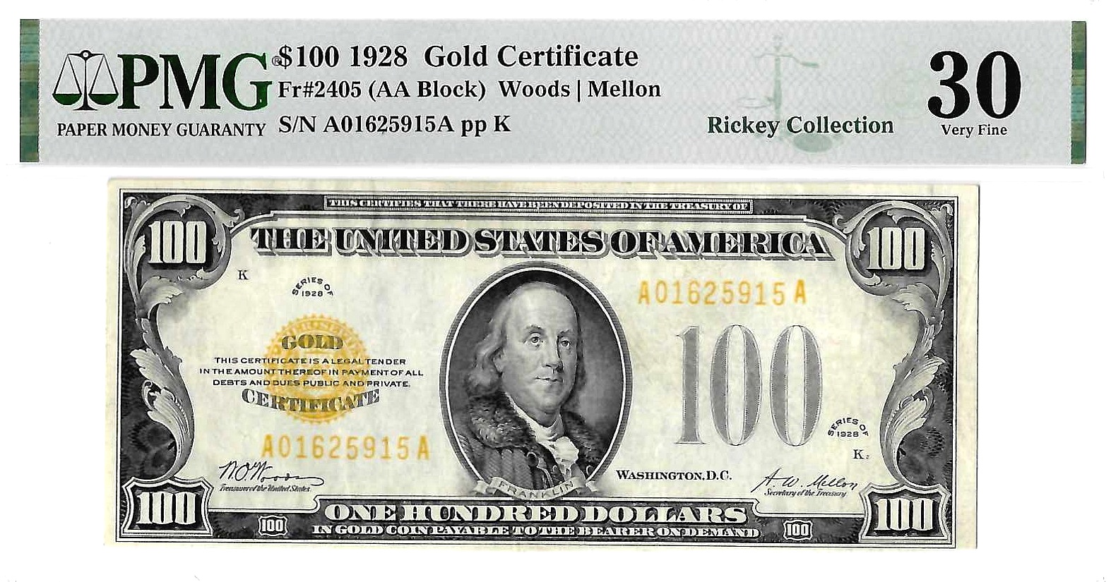 A bright high denomination that exhibits well balanced margins, strong color, and only light even wear.