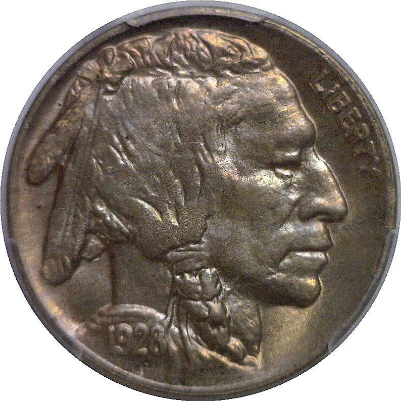 A lustrous and well-struck example displaying strong detail throughout the portrait and reverse bison. Warm golden toning overlays vibrant mint luster, enhancing the coin’s eye appeal. The surfaces are clean for the grade, with only minor ticks visible under magnification.