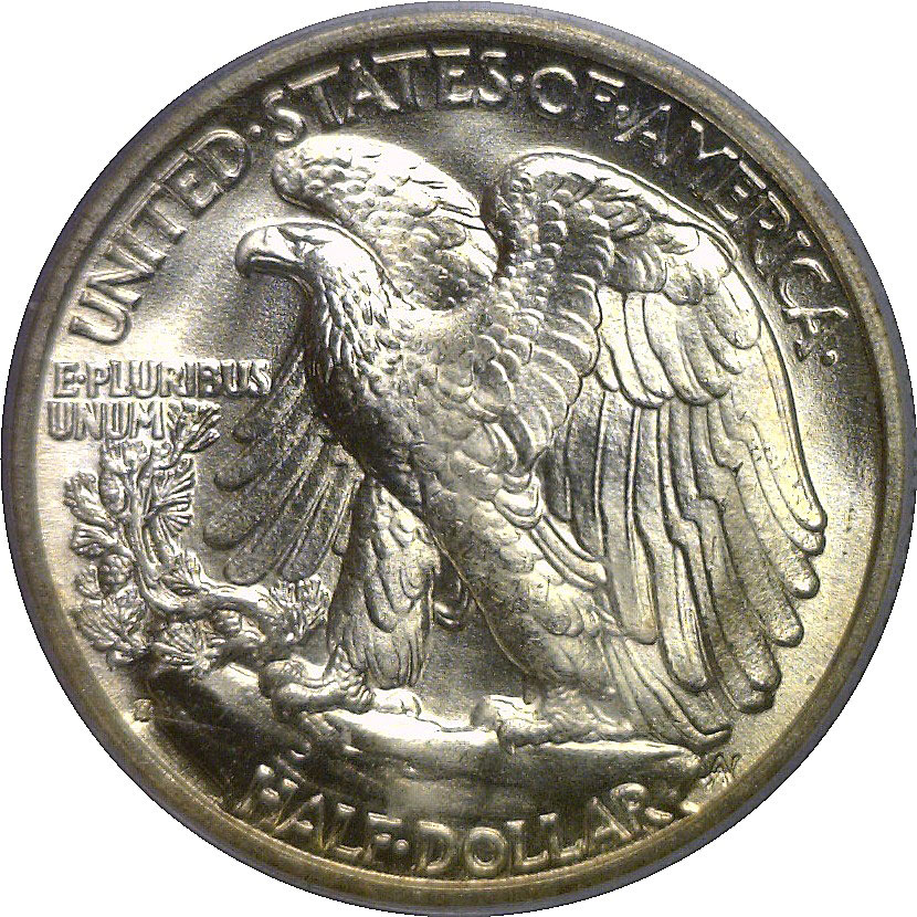 A beautiful Gem with highly lustrous silver surfaces displaying a soft satin sheen. Liberty’s figure is sharply detailed, while the reverse eagle shows strong feather definition. Housed in an early green label holder, this better date ‘Walker’ offers excellent eye appeal.