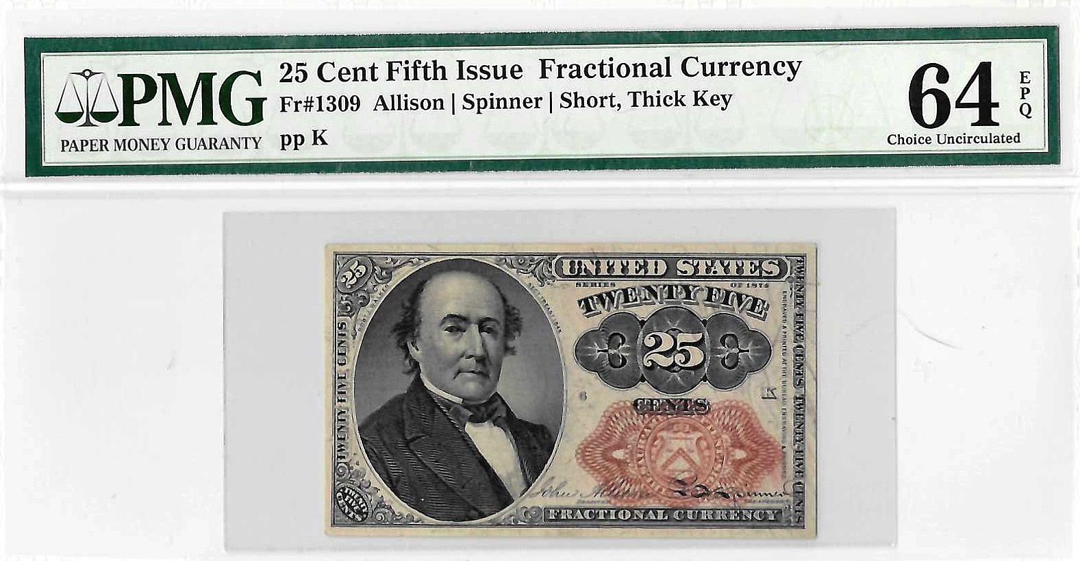Short, Thick Key. Bust of Robert J. Walker, Secretary of the Treasury 1845-1849. Ample margins with a bright red treasury seal.