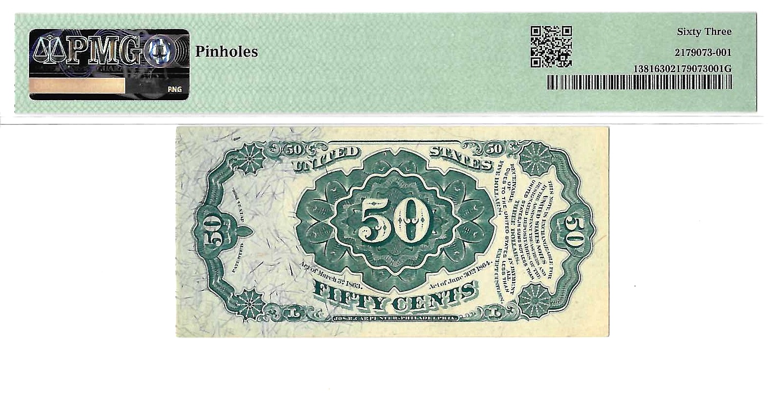 Comment: Pinholes. Blue Right End. Very well centered for the grade and solid inking. Two small pinholes top center.