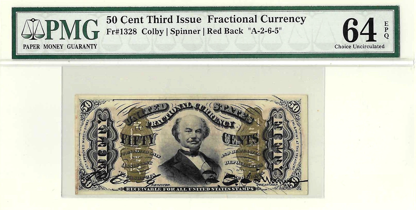 Red Back. “A-2-6-5”. Original paper displays ample margins, great color, and strong bronzing.