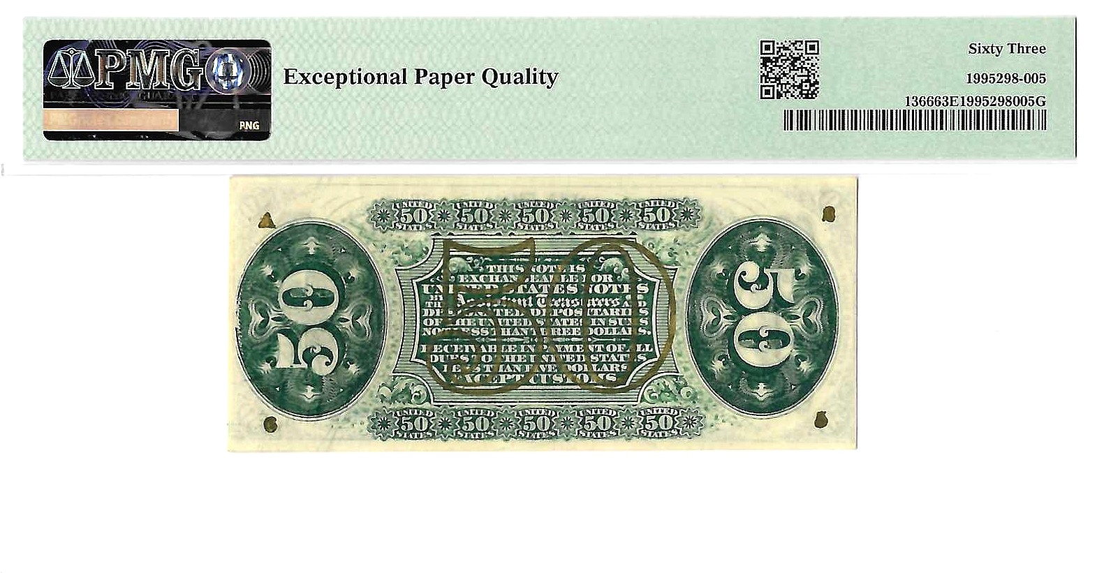 50 Cents Third Issue Fractional Currency Fr. 1366 PMG Choice UNC 63 EPQ